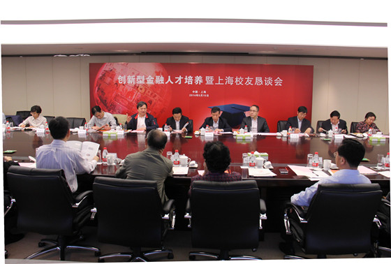 上海市金融办副主任吴俊应邀出席会议,并介绍了上海金融经济发展情况及对金融人才的需求。人民银行上海总部外汇管理部主任王利平、农银汇理基金总经理陈献明、人民银行上海总部金融服务一部主任季家友、农银金融租赁副总裁沈建林、上海银监局专营机构处副处长吴红兴、人民银行上海总部纪检二处助理调研员周智力、浦发银行运营管理总部总经理柯良川、招商银行审计部上海分部总经理林云海、上海巨中集团董事长齐建伟、中钻投资董事长叶成提、华茂集团监事局执行主席李江春、上海鸿日物业董事长戴永喜等校友参加座谈,并感谢母校的培养和关心。校友们为母校发展所取得的成绩而自豪,同时结合互联网时代金融经济形势发展及自身工作实际,对母校的建设与发展、创新型金融人才培养、提升教育质量、办学层次提升等方面提出了许多建设意见,并表示将一如既往关心支持母校的建设发展。