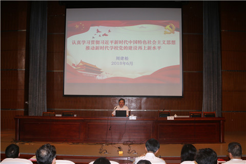 为隆重庆祝中国共产党建党97周年,6月27日下午,党委书记周建松为全体党员讲题为“认真学习贯彻习近平新时代中国特色社会主义思想 推动新时代学校党的建设再上新水平”的专题党课。党委副书记姜进主持,校党政领导班子成员,全体教师、学生党员参加党课。