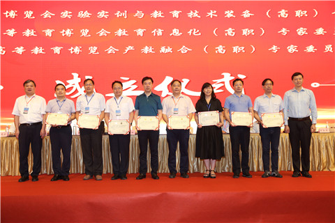 开幕式环节,受中国高等教育学会学会副会长、秘书长康凯的委托,学会秘书处事业发展部主任吴英策宣读了《中国高等教育学会关于批准成立中国高等教育博览会实验实训与教育技术装备(高职)、教育信息化(高职)、产教融合(高职)三个专家委员会的通知》(高学会〔2018〕114号)文件。会上举行了成立仪式并向高博会三个(高职)专家委员会主任及副主任委员代表颁发聘书,其中我校副校长郭福春当选中国高等教育博览会教育信息化(高职)专家委员会主任委员。