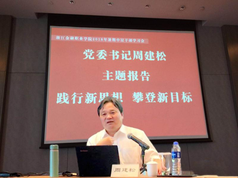 党委书记周建松传达了全国组织工作会议精神,全国宣传思想工作会议精神,并作《践行新思想 攀登新目标》的主题报告,报告充分肯定今年以来学校所取得的成绩,提出要正确把握学校的发展愿景和科学谋划今后一个阶段学校工作的重点任务,要求认真学习并践行习近平新时代中国特色社会主义思想,以更优良的精神风貌创造高品质幸福金院新业绩。