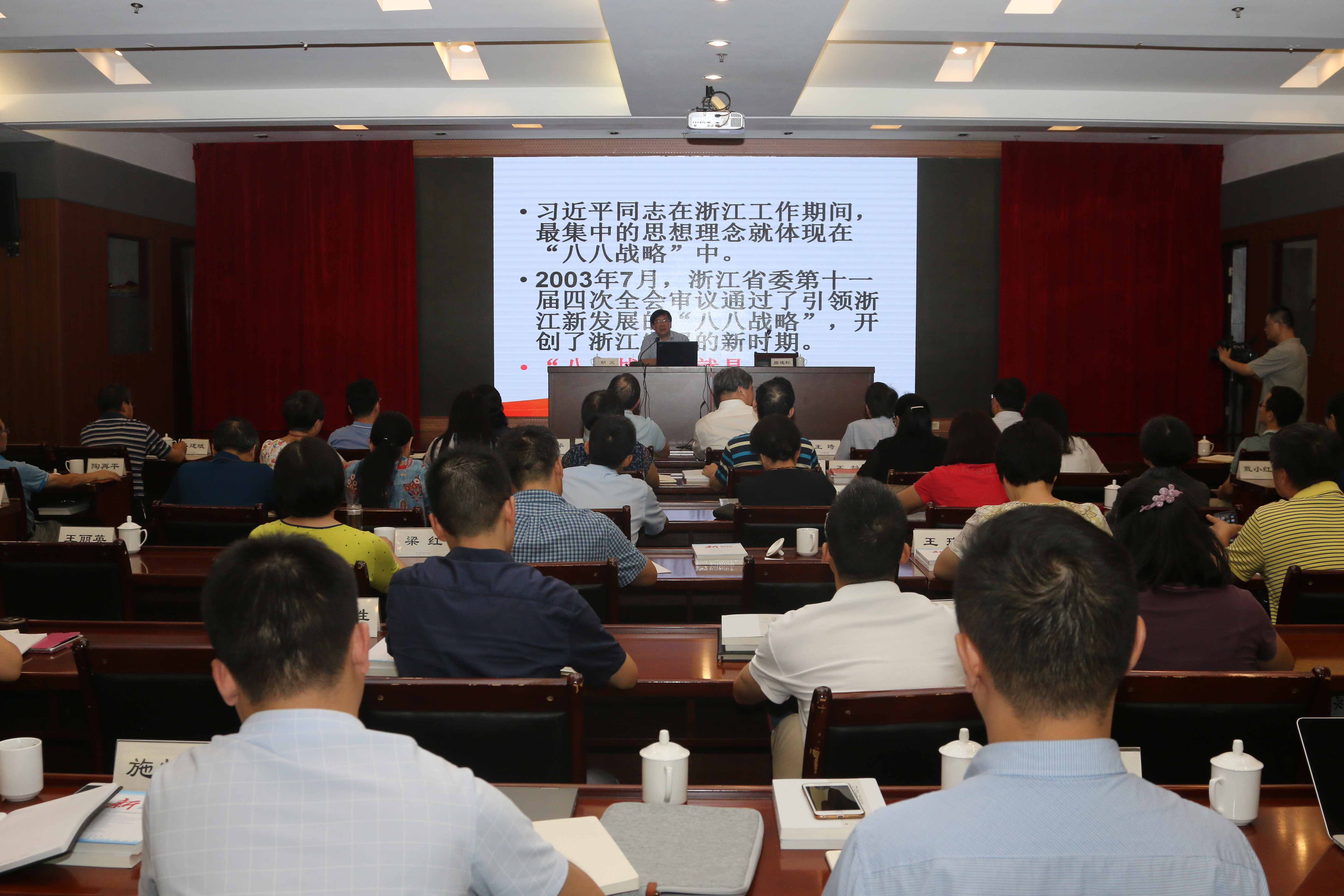 报告会上,胡坚围绕发挥“八个优势”,推进“八项举措”,从七方面进行了详细阐述和深刻解读。一是我们应当怎样认识“八八战略”;二是“八八战略”提出的时代背景和实践基础;三是以改革推动浙江发展,把先发优势变成可持续优势;四是实施“腾笼换鸟、凤凰涅槃”,推动浙江经济的转型升级;五是发挥浙江区位优势,推进区域协调发展;六是绿水青山就是金山银山,建设美丽浙江;七是建设文化大省,推进浙江文化繁荣兴盛。报告主题鲜明、重点突出、解读到位,深入浅出,理论性、思想性、实践性都很强,对全面理解和精准领会“八八战略”具有很强的指导意义。