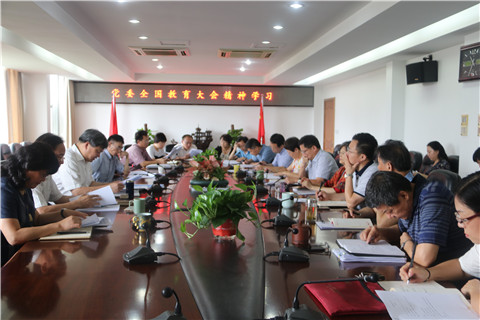 9月12日上午,学校党委召开学习会,传达学习全国教育大会精神,党委书记周建松主持会议,校党委委员,纪委委员,党委各部部长,党总支(直支)书记参加学习。