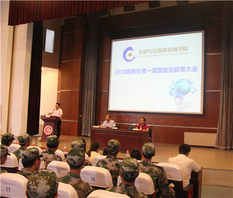 郭福春首先对346名新生的到来表示热烈欢迎,希望第一课成为新生一生中永恒的记忆。郭福春回顾了学校的辉煌历史,介绍了学校优越的办学条件,信息与互联网金融学院的历史发展,并着重谈了在大学三年做好职业生涯规划的重要性。
