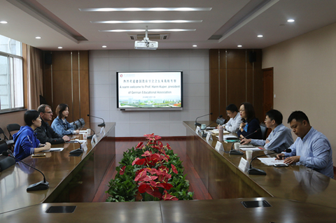 周建松代表学校对Harm Kuper教授的来访表示热烈欢迎,同时他代表中国高等教育学会职业技术教育分会和Harm Kuper教授探讨了与德国教育学会开展全方面合作的可能性。郑亚莉介绍了我校的发展历史、师资情况、办学特色、专业设置、人才培养和校友文化以及教育国际化建设等。Harm Kuper教授对我校的办学成就给予充分赞赏,他介绍了德国教育学会与柏林自由大学的基本情况,他表示将全力支持两学会之间的合作与交流,同时他分享了德国在职业教育和学生教育培养方面的理念和经验做法。双方还围绕校企合作、学生创新创业、学生继续教育等内容进行了更进一步的探讨。