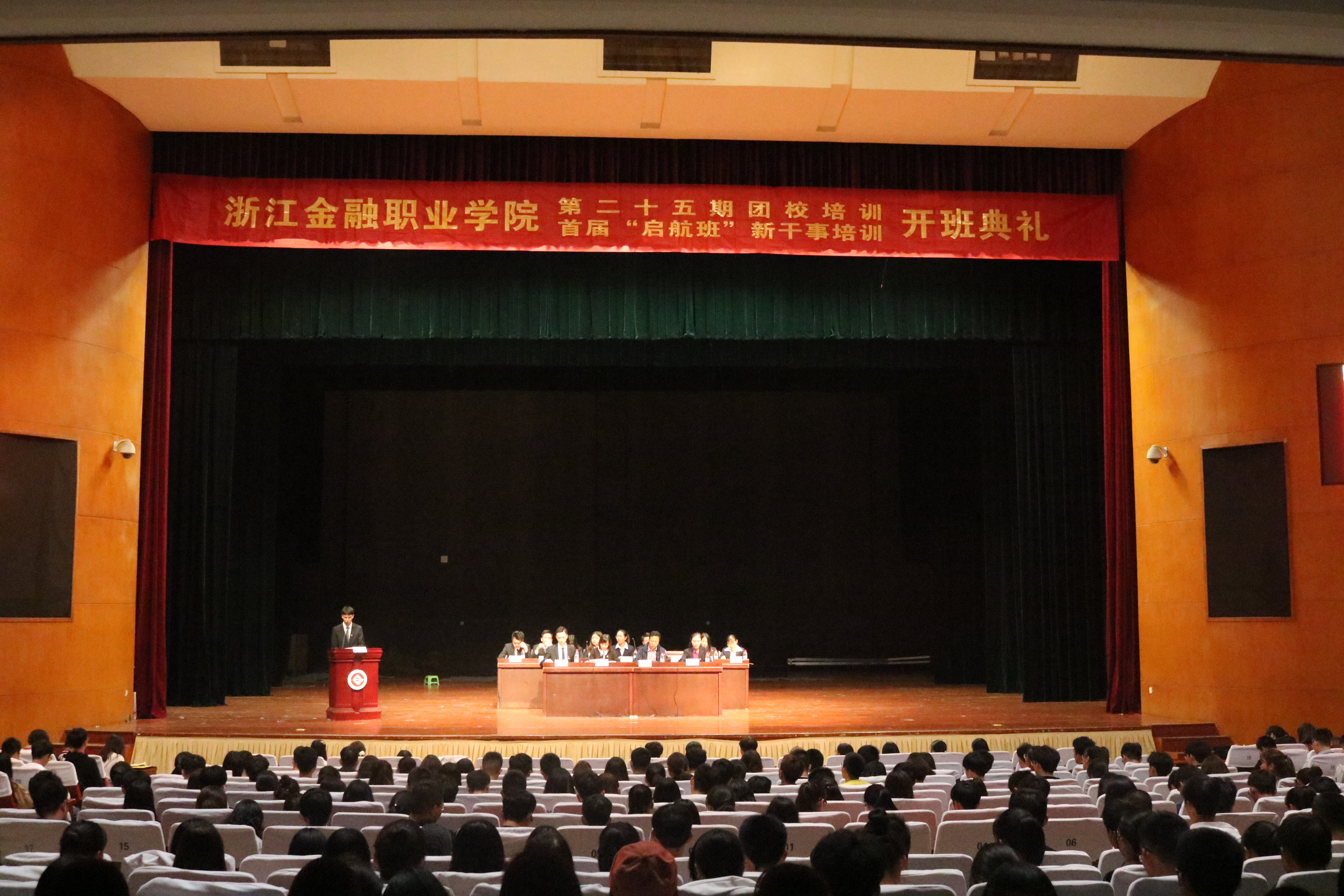 2018年10月17日下午,浙江金融职业学院第二十五期团校培训暨首届“启航班”新干事培训开班典礼在金葵花艺术中心举行。副校长郭福春出席开班典礼并讲话,校团委相关负责人和校团学社全体2018级新干事、2018级班长、团支书参加了开班典礼。