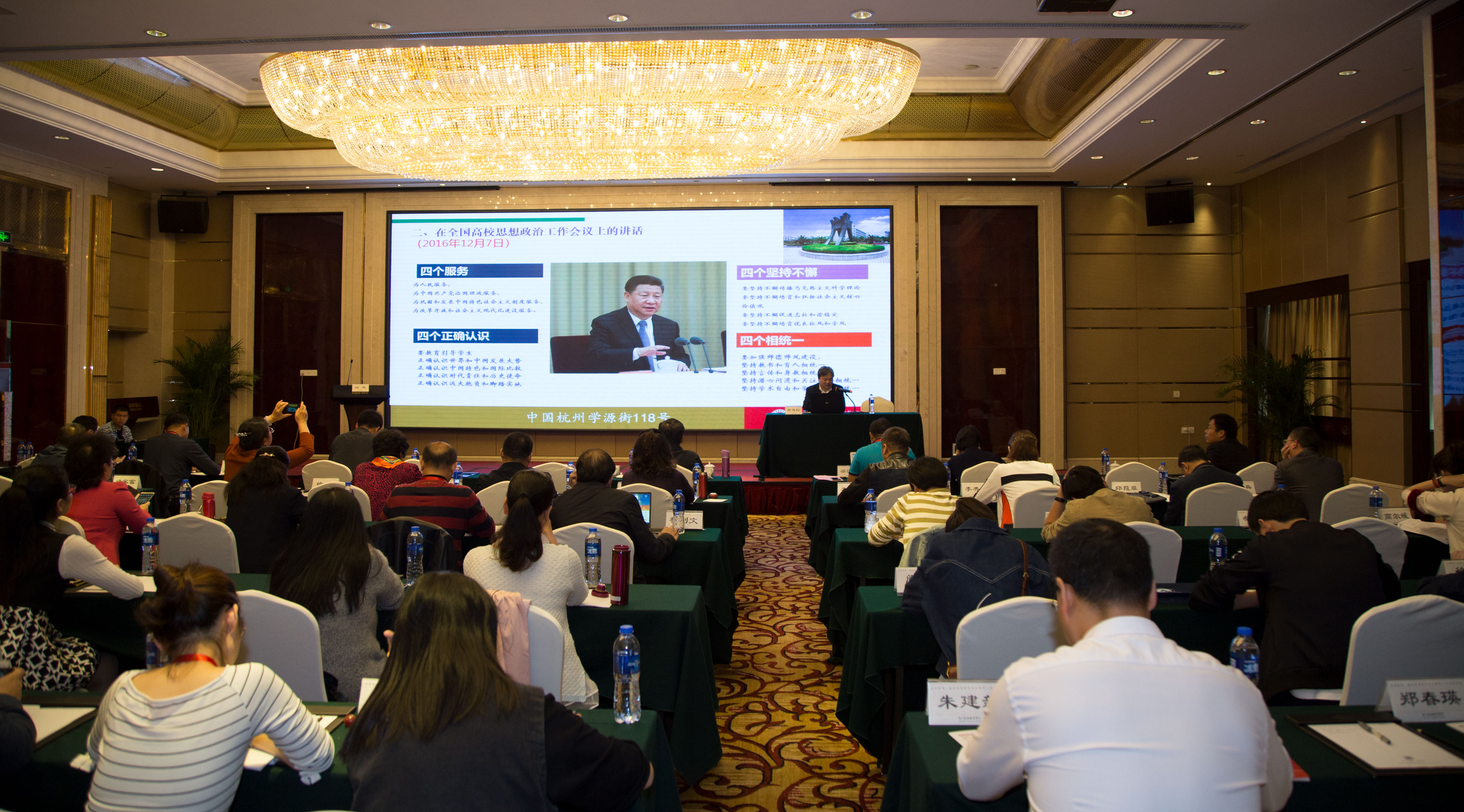 为深入学习贯彻习近平总书记教育思想和全国教育大会会议精神,落实立德树人根本任务,交流展示国家“万人计划”教学名师在教书育人中所取得的经验和成果,共同探讨新时代高等职业教育人才培养。10月24日-26日,由中国高等教育学会职业技术教育分会与浙江金融职业学院联合主办的“名师荟萃:新时代高职院校立德树人交流研讨会”在杭州顺利召开。来自全国高职院校的部分国家“万人计划”教学名师、职院校代表、新闻媒体等近百人参加会议。作为研究会理事长单位,中国高等教育学会职业技术教育分会理事长、学校党委书记周建松,中国高等教育学会职业技术教育分会秘书长、学校副校长郭福春等参加会议。