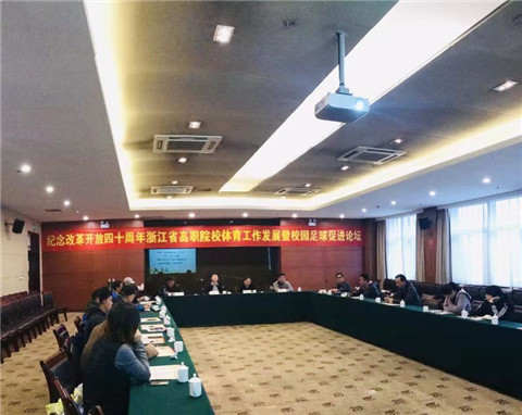 11月16日下午,由浙江省体育科学学会主办,浙江金融职业学院承办,浙江金融职业学院浙江高职体育研究中心执行,浙江省学校体育协会(大学部)足球分会、浙江金苑培训中心协办的“改革开放四十周年浙江省高职院校体育工作发展暨校园足球促进”论坛在学校汇丰大厦汇萃厅举行,来自浙江省体育科学学会、浙江省高等教育学会体育专业委员会、浙江省学校体育协会、浙江省学校体育协会(大学部)足球分会的有关领导和来自全省高职院校体育部室主任、校园足球指导者共30余人参加了论坛活动。