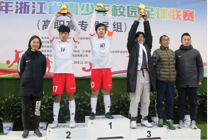 2018年浙江省青少年校园足球联赛(高职高专男子组)比赛于11月16日开赛,全体金院男足健儿们经过风雨、降温和伤病的严峻考验,经过6天6场的激烈拼搏,分别以2:0、3:0、5:1、2:0、3:0和2:1分别战胜对手,再次荣登浙江省高职高专男子组冠军殊荣,从而再次获得代表浙江省高职院校参加2019年中国大学生青少年校园足球联赛(高职高专男子组)南区决赛的资格。