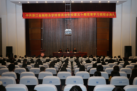 12月5日下午,中共浙江金融职业学院委员会党校第五十期党章学习班结业典礼在明理报告厅隆重举行。学校副校长郭福春出席典礼并作总结讲话,学工部相关负责人出席典礼。学习班班主任、班长及结业学员411人参加了本次典礼。