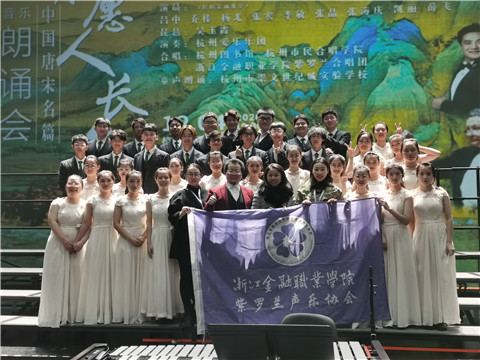 音乐会开演前,杭州市文化广电旅游局副局长陆小龙,杭州图书馆馆长刘冬、副馆长丁晓芳等特地来到后台,看望全体合唱队员(杭州市民合唱学院混声团、指挥师资团、浙江金融职业学院紫罗兰合唱团)。我校紫罗兰合唱团出演了音乐会的六首合唱作品,其艺术质量获得了极大好评。本次活动是我校紫罗兰合唱团继受邀杭州电视台生活频道参加高新区成立三十周年晚会后,本学期第二次受邀大型文艺晚会节目表演。团员有大一的新同学,也有大三即将毕业的同学,还有大四本科的同学。有的同学在合唱团已经唱了四年,风雨无阻,每次活动场场不落。为了此次演出,同学们前期连续一周校内排练,后期一周每天来回乘两小时的大巴车前往杭州市图书馆与杭州市市民合唱团共同排练4-5小时。同学们为了不拉下课业,每天利用早晨和中午时间抓紧学习。还有同学的家长听说孩子在杭州大剧院和专业艺术家同台演出,提前预定大剧院演出门票,从宁波乘高铁来看孩子演出。对学校的校园艺术文化赞不绝口。此次活动潜移默化的弘扬了浙东唐诗之路文化,让同学们感受了不一样的校园文化活动,更好地了解文化,增加知识,同学们是在为中国传统文化而吟唱,是在用歌声向城市和大众传播中华文明的千古绝唱!