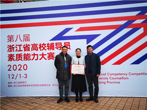 12月1日至3日,由浙江省教育厅主办、浙江师范大学承办的第八届浙江省高校辅导员素质能力大赛在金华举行。我校辅导员韩丹丹凭借优异的表现,从全省共87所高校的106位辅导员中脱颖而出,荣获三等奖。