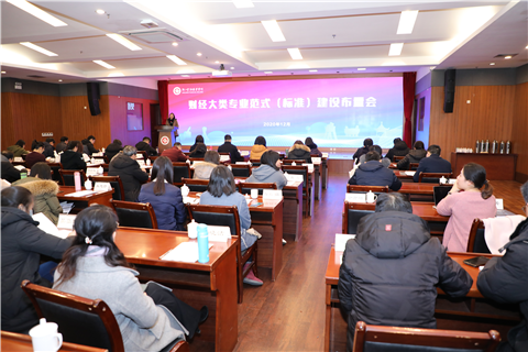 12月16日下午,财经大类专业范式建设工作布置会在我校汇丰大厦汇通厅召开,学校副校长郭福春出席并讲话,各二级学院院长、副院长,各专业主任、副主任参加会议,会议由学校党委委员、教务处处长孔德兰主持。