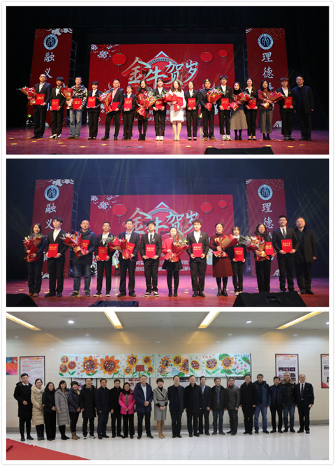 大会第二阶段,迎新年晚会在开场舞中拉开了序幕。晚会分为“不忘初心 与爱同行”、“薪火相传 筑梦金院”、“众志成城 共赴新春”三个篇章,包含歌曲、舞蹈、小品、话剧、朗诵等节目,精彩纷呈,高潮迭起。