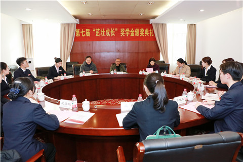 在金葵花艺术中心,银领学院举行了第七届“茁壮成长”奖学金颁奖仪式。吴惠良、陈春祥共同为获奖学生颁发了荣誉证书,陈云涛宣读表彰文件。