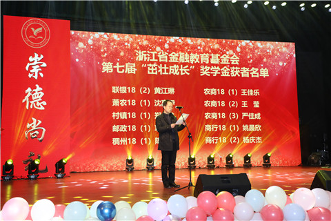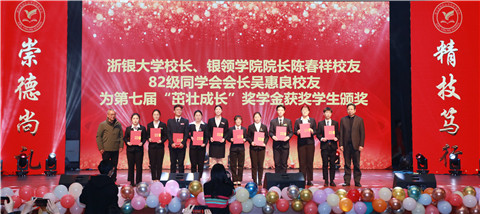 1月7日下午,银领学院隆重举行浙江省金融教育基金会第七届“茁壮成长”奖学金颁奖典礼。学校82级同学会会长吴惠良,浙银大学校长、银领学院院长陈春祥,学校副校长陈云涛,浙江省金融教育基金会秘书长、学校合作发展处、银领学院有关负责人出席颁奖典礼。