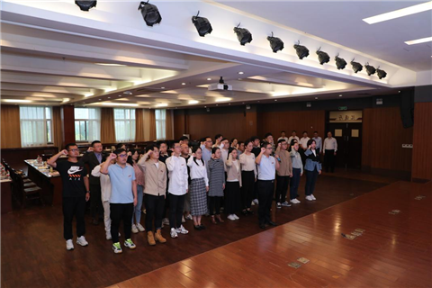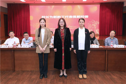 欢迎仪式上,党委副书记王琦向新教工介绍了学校领导班子成员及分工,新教工作自我介绍,“国家万人计划”教学名师、二级教授章安平代表老教工发言,新教工代表翁炫彬发言,校长为新教工代表佩戴校徽,全体新教工进行了入职宣誓。