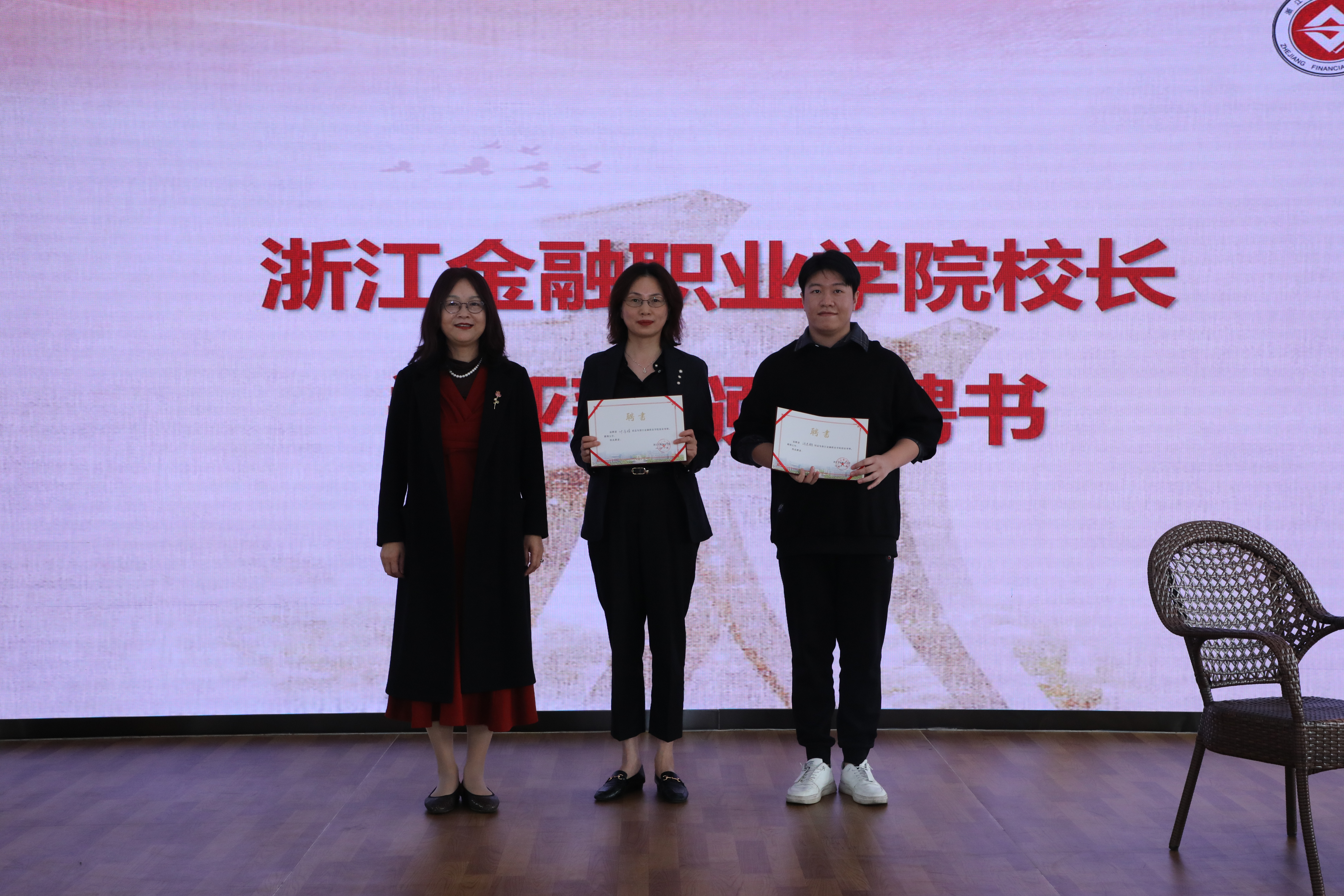 随后,郑亚莉为叶厉娟、汤志鹏两位校友颁发“创业导师特聘证书”。