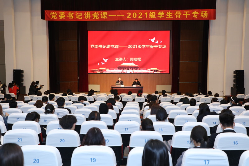 11月9日下午,党委书记讲党课——2021级学生骨干专场专题党课在明理报告厅举行。学校党委书记周建松为2021级学生骨干讲授了题为《学习<党史> 以史为鉴 明理增信崇德力行》、《学习习近平总书记建党百年讲话 强化青年学子使命和责任担当》专题党课。本次党课由党委组织部相关负责人主持。