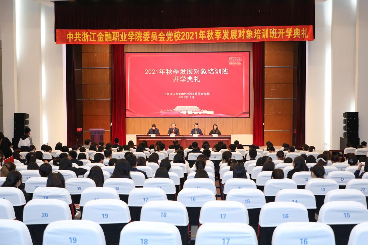 11月16日,在全国上下共同庆祝党的百年华诞,深入开展党史学习教育,学习领会党的十九届六中全会精神之际。我校2021年秋季党员发展对象培训班开学典礼在明理报告厅隆重举行。学校党委书记、党校校长周建松,学校党委委员、党校副校长陈云涛出席典礼,学工部相关负责人、各二级学院负责党建工作辅导员、组织员,以及本期210名学员参加典礼。典礼由学工部相关负责人主持。