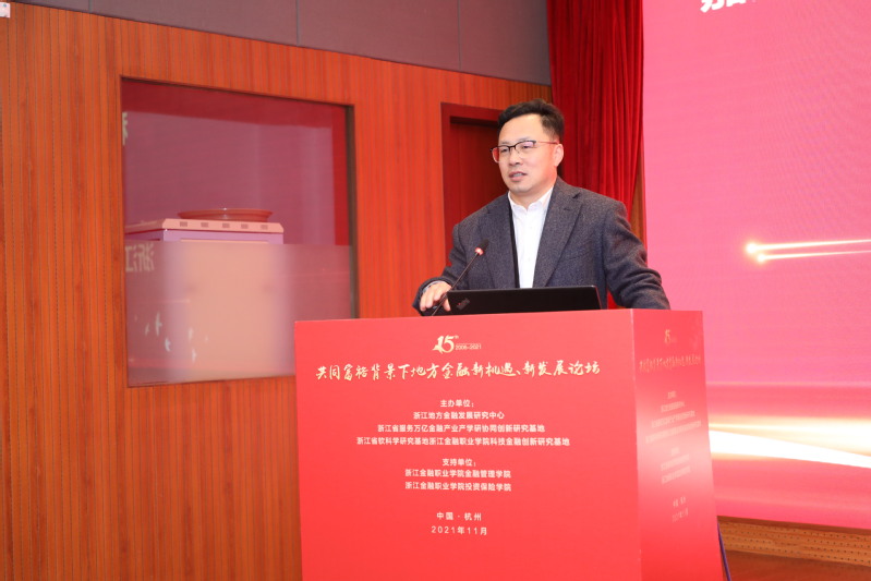 2021年11月24日,为庆祝浙江地方金融发展研究中心成立15周年,由浙江地方金融发展研究中心、浙江省软科学研究基地浙江金融职业学院科技创新金融研究基地、浙江省服务万亿金融产业产学研协同创新基地联合主办的“浙江地方金融发展研究中心成立15周年暨共同富裕背景下地方金融新机遇、新发展论坛”在汇丰大厦顺利举行。学校党委书记、浙江地方金融发展研究中心主任周建松、副校长郭福春出席本次论坛。论坛由郭福春副校长主持。