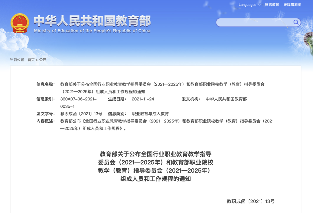 12月13日,教育部发布了《关于公布全国行业职业教育教学指导委员会(2021—2025年)和教育部职业院校教学(教育)指导委员会(2021—2025年)组成人员和工作规程的通知》,我校共有八位优秀教师榜上有名。