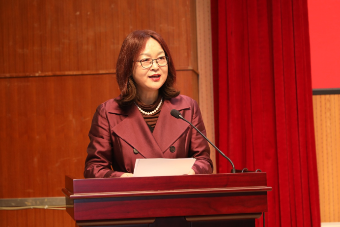 校长郑亚莉发表讲话,祝贺第八届“金院好课堂”教学能力比赛获得圆满成功,对莅临指导的各位专家评委和积极参与“金院好课堂”的教师表示衷心感谢。她表示,“金院好课堂”自2014年由学校党委书记周建松亲笔题字,启动至今已历八届,好课堂的创建与成效,是全体金院人共同努力、共同探索的结果。对于“好课堂”,她指出:好课堂应该是“育人课堂”,要落实“立德树人”的根本任务,要深刻认识所有课程的社会属性和情感教育价值,要让学生从获取知识的过程中认知社会,启迪健康、积极、高尚的情操;好课堂应该是“有趣课堂”,要打破以教师为中心、以教材为中心、以教室为中心的“三教中心”模式,创设以学生为中心、以课程为中心、以学习为中心的新型课堂;好课堂应该是“智能课堂”,要打破传统教学的时空界限,创设技术赋能的E时代课堂。