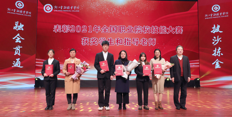 学校对2021年全国职业院校技能大赛获奖学生和指导老师、2021年国家奖学金获得者、2021年团中央“三下乡”暑期社会实践获奖学生和指导老师、2021年省政府奖学金获得者、2021年荣获省级竞赛一等奖以上奖项的获奖学生和指导老师、先进班级、“三好学生”代表进行了表彰,学校领导为获奖师生代表颁奖。会上,2021年国家奖学金“特别评审奖”获得者俞益施、国际商学院“童心向党 筑梦未来”台州三门社会实践团印玥同学分别做学习经验和社会实践的主题分享。
