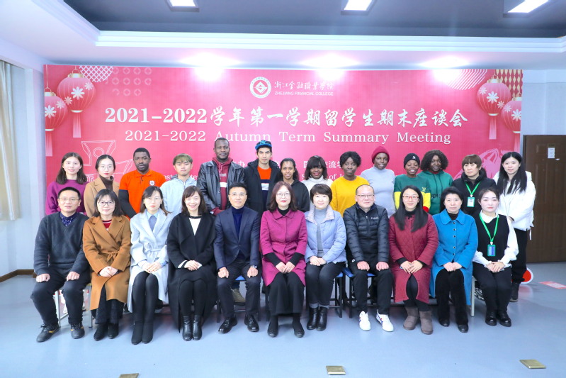 1月7日下午,浙江金融职业学院2021-2022学年第一学期留学生期末座谈会及迎新春活动在金通306举行。学校校长郑亚莉,教务处、学生处、国际交流处、国际交流学院、国际商学院相关负责人,对外汉语教研室教师代表,留学生班主任、辅导员,师大后勤管理人员,以及全体留学生参加了此次座谈会。