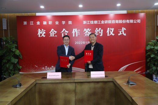 1月11日下午,学校与浙江钱塘江金研院咨询股份有限公司在兴业行政楼101会议室举行校企合作签约仪式。学校校长郑亚莉、副校长方华、副校长郭福春、浙江钱塘江金研院咨询股份有限公司执行院长所向东、监事长袁放、运营总监叶青参加本次签约仪式。