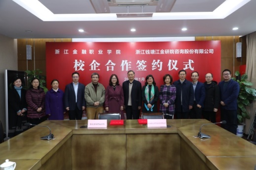 浙江钱塘江金研院咨询股份有限公司咨询证书部负责人、学校合作发展处、金融管理学院、投资与保险学院、继续教育与培训学院相关负责人出席本次签约仪式。
