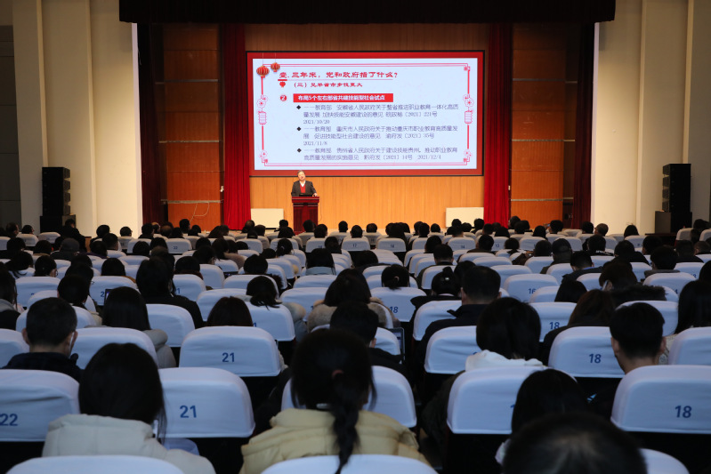 为回顾总结学校办学成效,凝聚共识推进学校全面发展,1月12日下午,学校召开2022年新年工作报告会,党委书记周建松出席会议并作新年工作报告,校长郑亚莉主持会议,全体校领导、教职工参加会议。