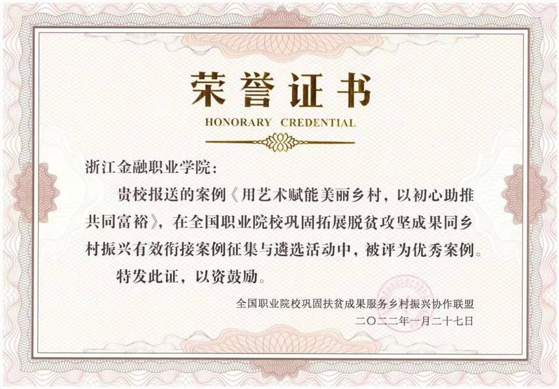 近日,全国职业院校巩固扶贫成果服务乡村振兴协作联盟发布《关于职业院校巩固拓展脱贫攻坚成果同乡村振兴有效衔接优秀案例遴选结果的通报》。该联盟组织专家对全国报送的113个案例进行遴选,共评选出40个优秀案例。我校报送的案例《用艺术赋能美丽乡村,以初心助推共同富裕》被评选为优秀案例。