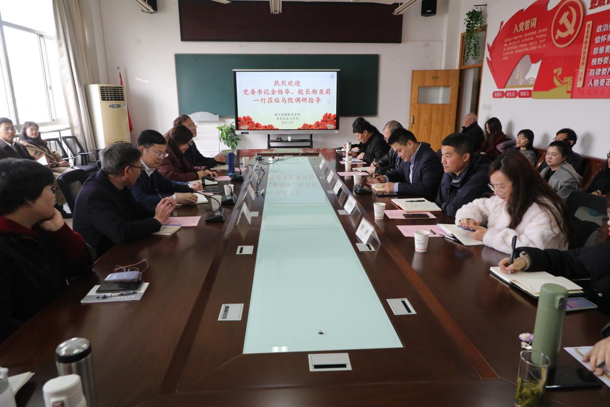 3月23日下午,学校党委书记金杨华、校长郑亚莉、党委副书记王琦、党委委员、宣传部部长、党办校办主任张鹏超一行赴马克思主义学院调研指导。王琦主持会议,党委宣传部、学工部负责人和马克思主义学院专兼职教师出席会议。