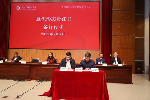 会上,党委书记金杨华分别与党委教师工作部、投资保险学院、会计学院签订意识形态工作责任书,还分别与基建后勤处、金融管理学院、国际商学院签订平安校园建设责任书。