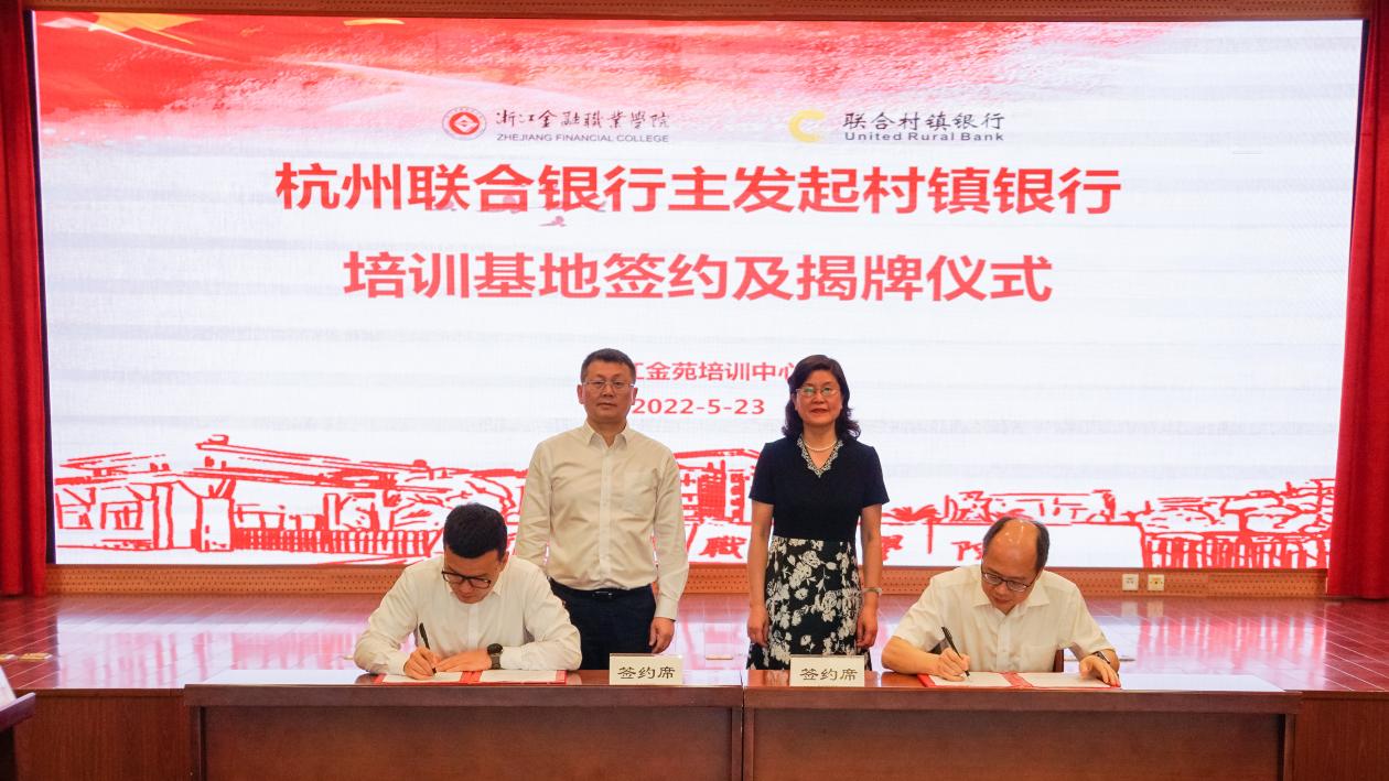此次杭州联合银行主发起村镇银行培训基地的签约,是学校继中国银行浙江省分行、中国邮政储蓄银行浙江省分行、中国农业银行杭州市分行等多家金融机构之后,又增添了一家银行在职员工培训基地,是学校以员工培训基地为载体构建产教融合新模式、形成校企发展共同体的又一成果。