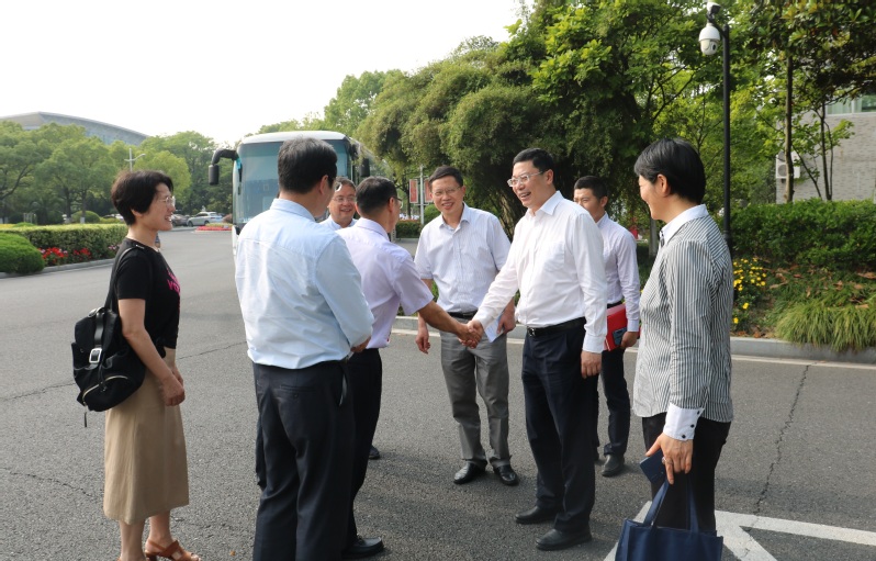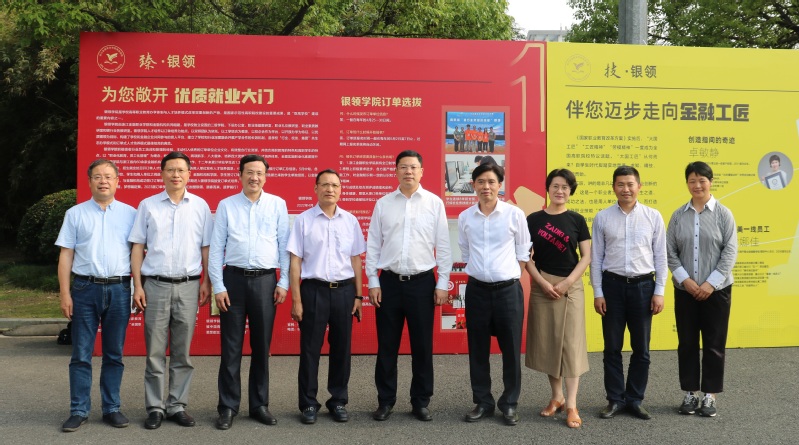 5月25日下午,在银领学院举行浙江省金融教育基金会第六届“技能之星”奖学金颁奖仪式之际。学校党委书记金杨华亲切接见了来出席颁奖仪式的86届校友代表、光大证券杭州延安路营业部董事总经理吴依民、北京银行杭州拱墅支行原行长蒋志华、长安责任保险浙江省分公司非车险部原总经理姚国强、中国工商银行台州市分行个贷中心孙金玲一行。