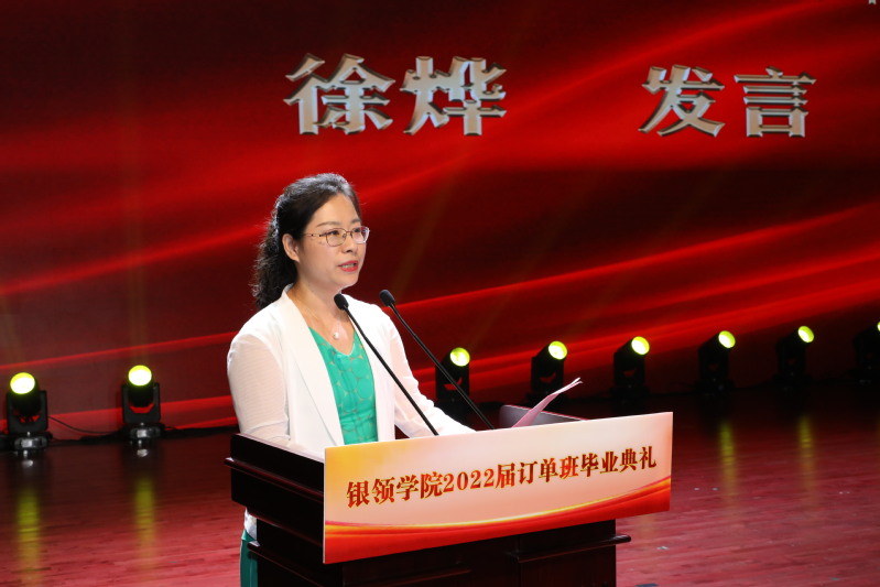 教师代表、招商银行2022届订单班班主任徐烨在典礼上发言,她鼓励全体2022届银领毕业生,要心怀梦想和目标,成为有思维高度的职场人;怀揣勇气和胆识,成为笑对困难的职场人;传递意义和温暖感,成为主动积极的职场人。