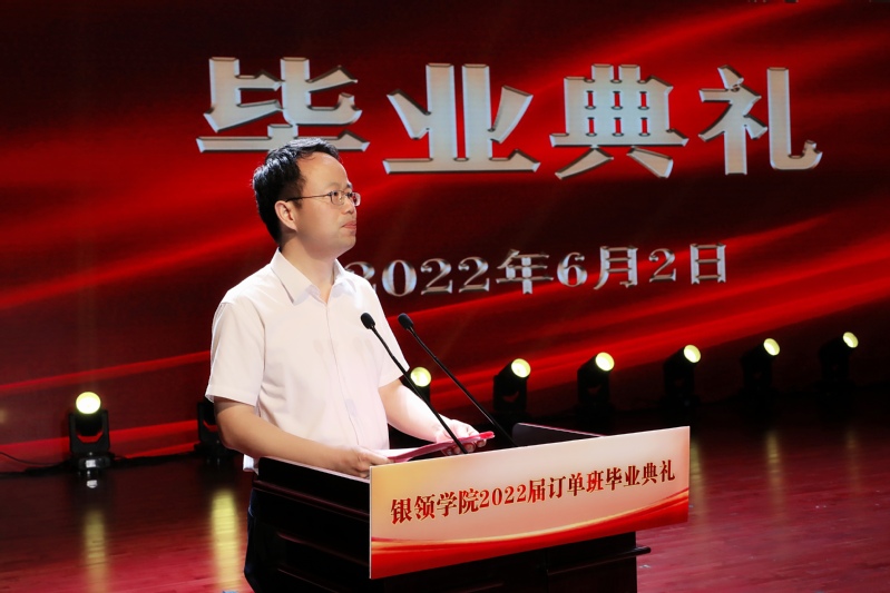 毕业典礼上,金杨华代表学校党委对银领学院2022届全体毕业生完成银领学院订单培养学业、顺利毕业表示衷心祝贺。他高度肯定2022届银领毕业生在“披沙拣金、融会贯通”校训和“崇德尚礼、精技笃行”院训的引领下,积极投身以六“金”工程为载体的素质培养,并在各项竞赛和评奖评优中取得优异成绩,为银领学院书写了2022届订单人才培养的绚丽篇章,为学校高水平建设职业大学贡献了力量。他要求全体毕业生深刻学习领会习近平总书记对职业教育作出的重要指示和在北大作的“五四”重要讲话精神,殷切希望全体毕业生明德励志,永葆爱国之心;养成习惯,锻炼健康之身;弘毅笃行,锤炼工匠之品;锐意创新,勇迈发展之路,努力成为心中有光的追梦者、胸怀家国的奋进者、精技笃行的工匠者。