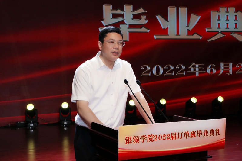 陈春祥在致辞中通过4个生动的案例,分享了新时代金融行业发展的趋势和对金融从业人员的能力素质要求,勉励全体银领学院2022届毕业生从心出发、坚持学习、转变理念、创新方式,积极适应金融行业的变革和发展,努力在岗位工作中磨砺品质、锤炼本领,成长为优秀的金融人才,成就美好幸福的出彩人生。