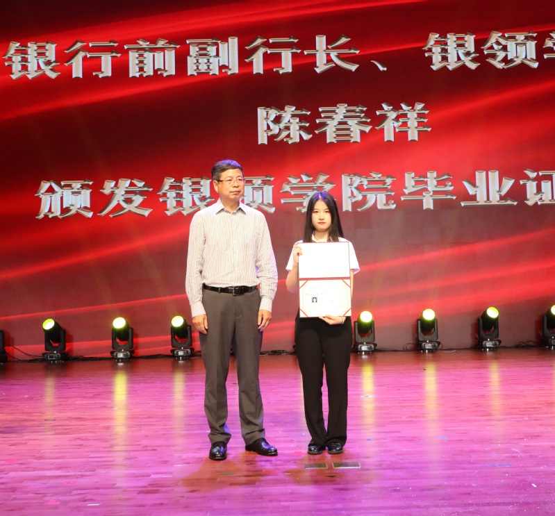 在激昂的乐曲声中,陈春祥为2022届毕业生代表们颁发了银领学院毕业证书。
