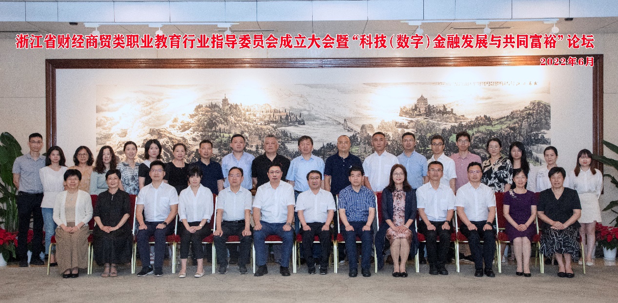 6月29日,浙江省财经商贸类职业教育行业指导委员会成立大会暨“科技(数字)金融发展与共同富裕”论坛在杭州隆重召开。本次会议由浙江省财经商贸类职业教育行业指导委员会主办,浙江金融职业学院、电子商务与新消费研究院、浙江地方金融发展研究中心承办。浙江省商务厅党组成员、副厅长张钱江,浙江省教育厅职成教处处长陈达,学校党委书记金杨华,省财经商贸行指委秘书长、学校副校长郭福春,浙江大学公共政策研究院执行院长金雪军,浙江大学金融研究所所长王维安,浙江大学中国数字贸易研究院院长马述忠出席会议,省财经商贸行指委副主任委员、学校校长郑亚莉主持会议,来自省内行业企业、中高职院校的40余位委员及专家出席会议。