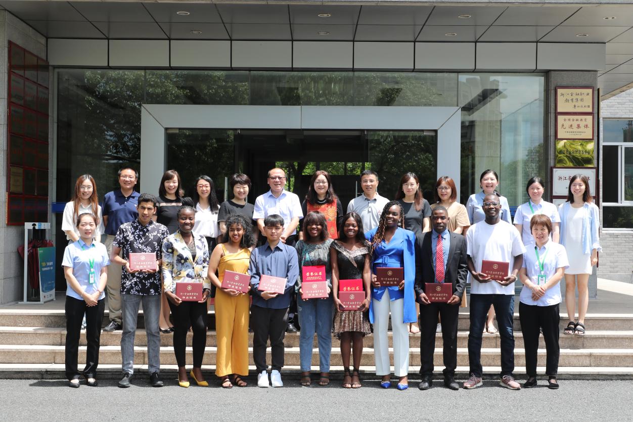 会上,郑亚莉为留学生颁发了毕业证书及金院印迹,国际交流学院院长为留学生颁发奖学金证书。