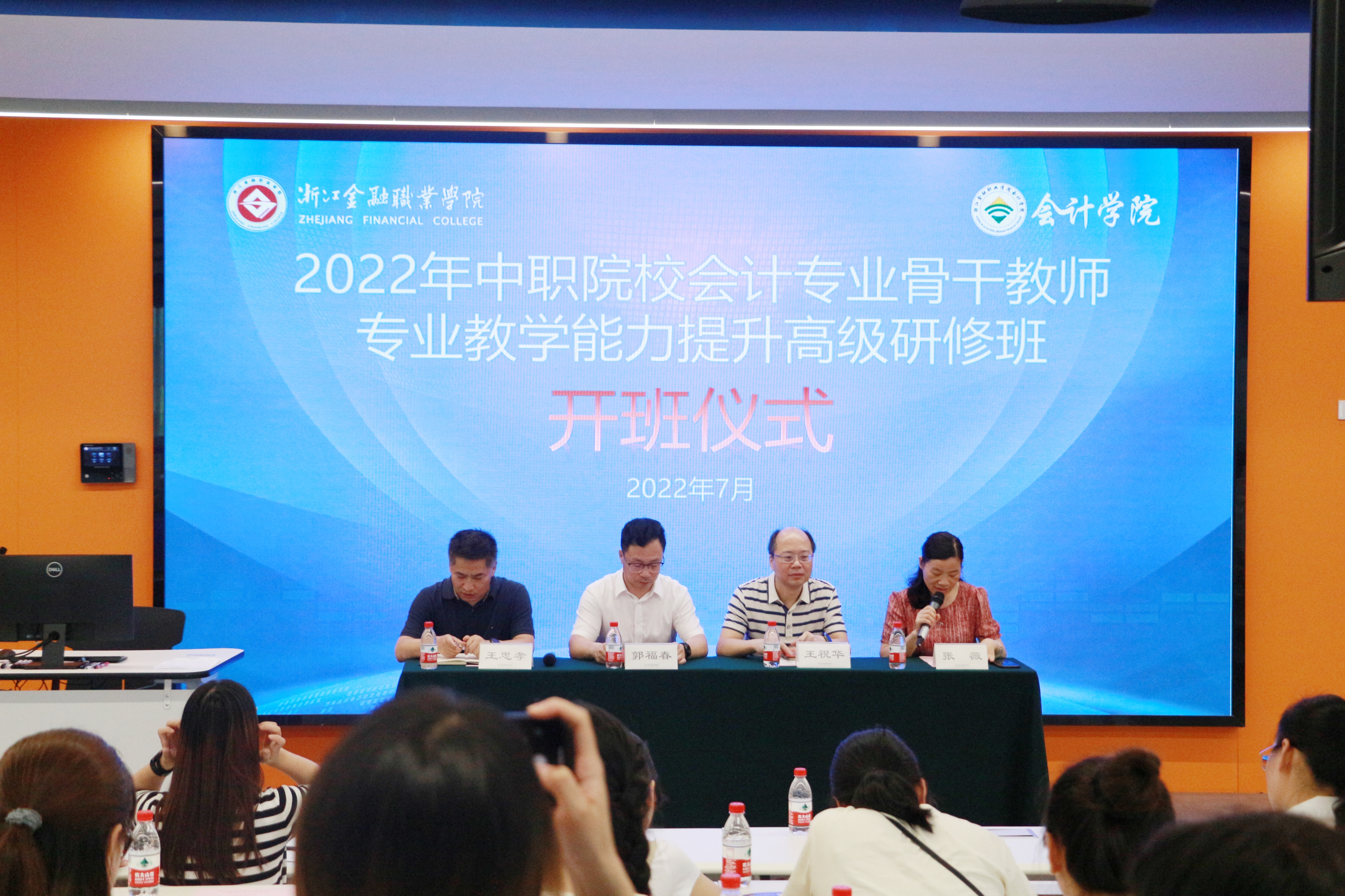 7月4日上午,2022年中职院校会计专业骨干教师专业教学能力提升高级研修班开班仪式在光大教学楼9305举行,学校副校长郭福春出席了开班仪式,会计学院、继续教育与培训学院相关负责人参加了开班仪式,30多位来自浙江省中职院校的会计专业骨干教师参加培训。