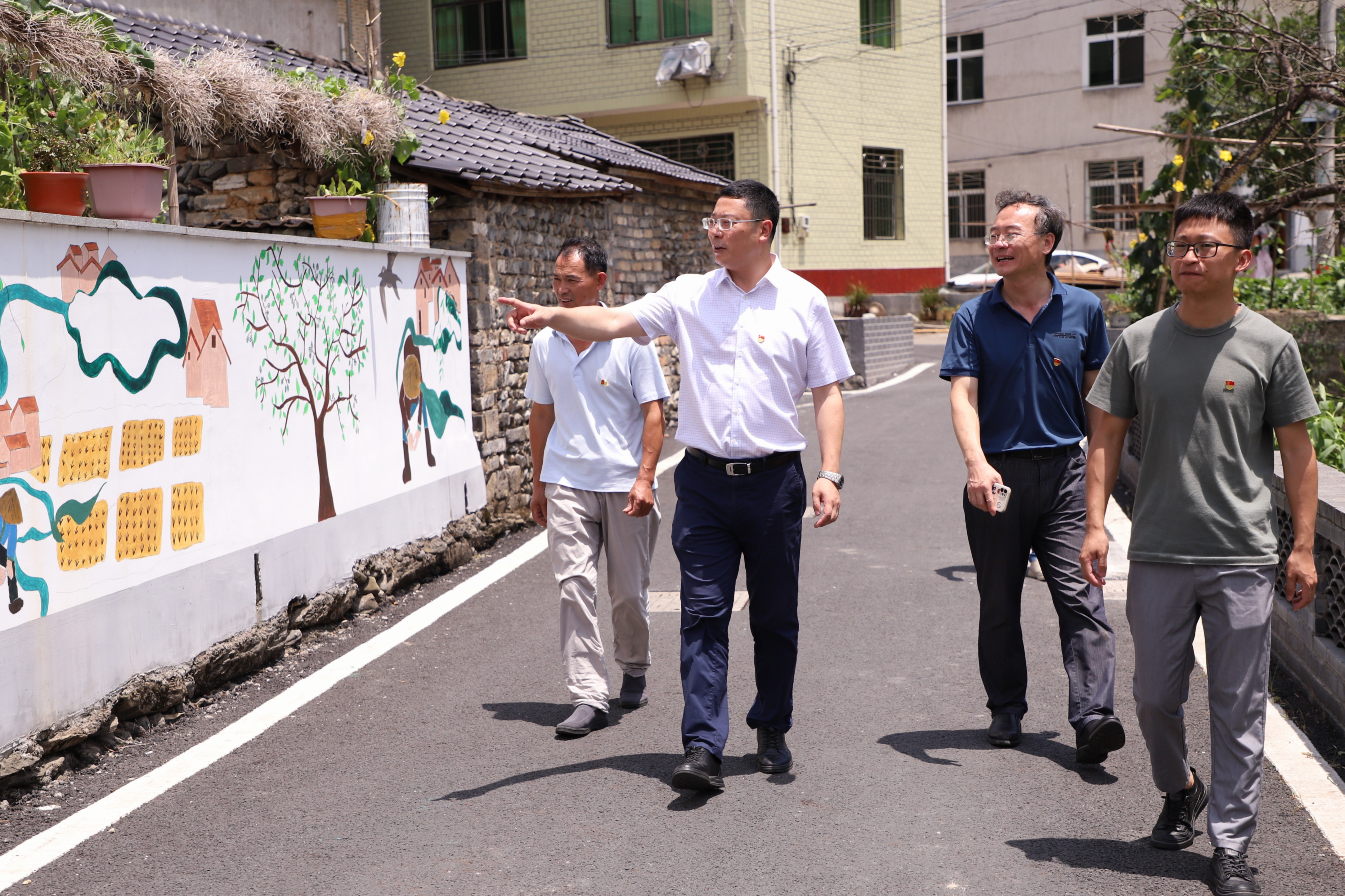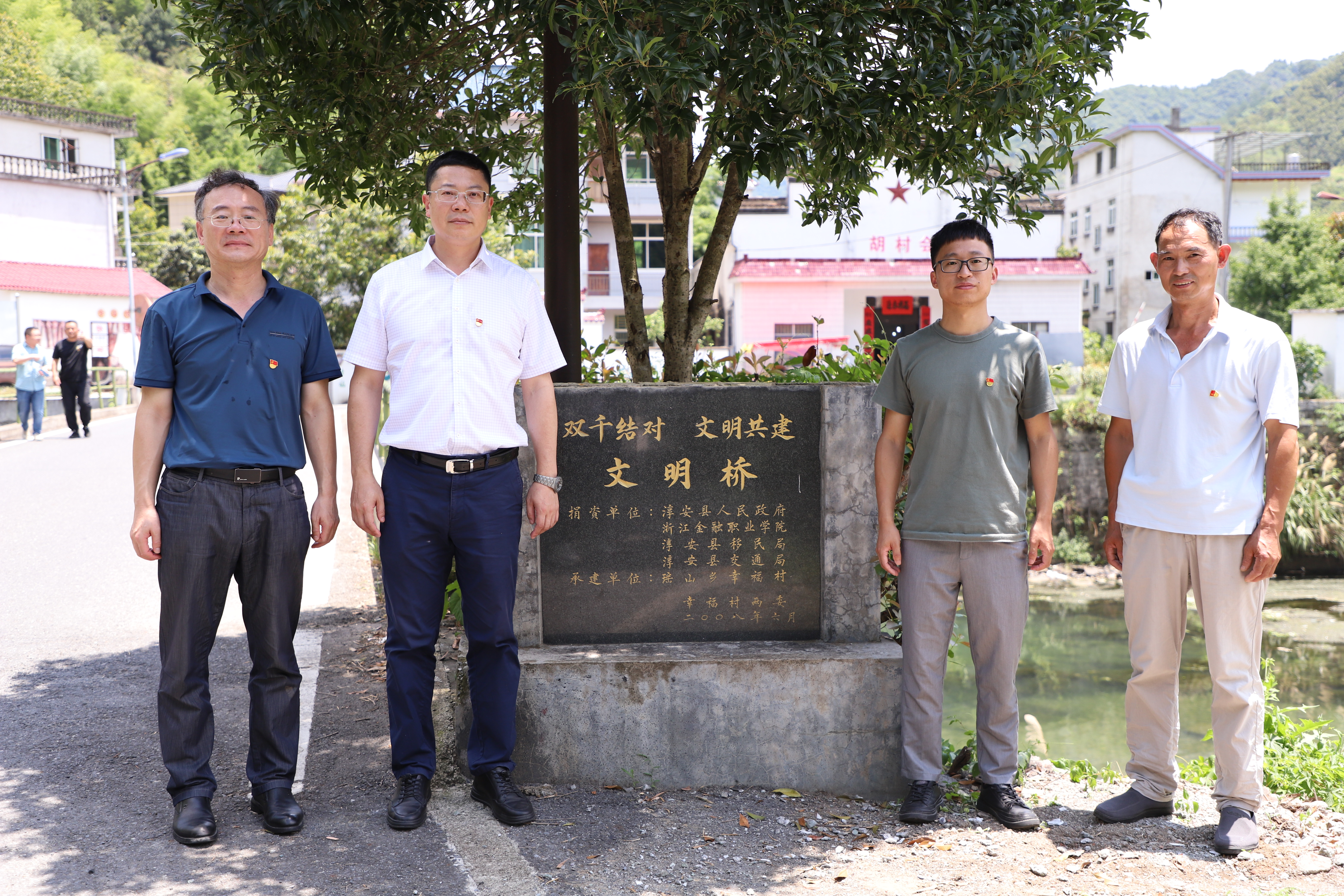 会后,金杨华实地走访了幸福大道、同心坝、文明桥等校村结对共建成果。在村干部的陪同下对幸福村当地居民进行调研,村民们对金杨华的到来表示热烈欢迎。通过与村民的对话,金杨华深切的感受到幸福村与浙江金融职业学院结对十七年以来的显著变化,并表示要促进幸福村发展,将校村共建成果结得越大越好。