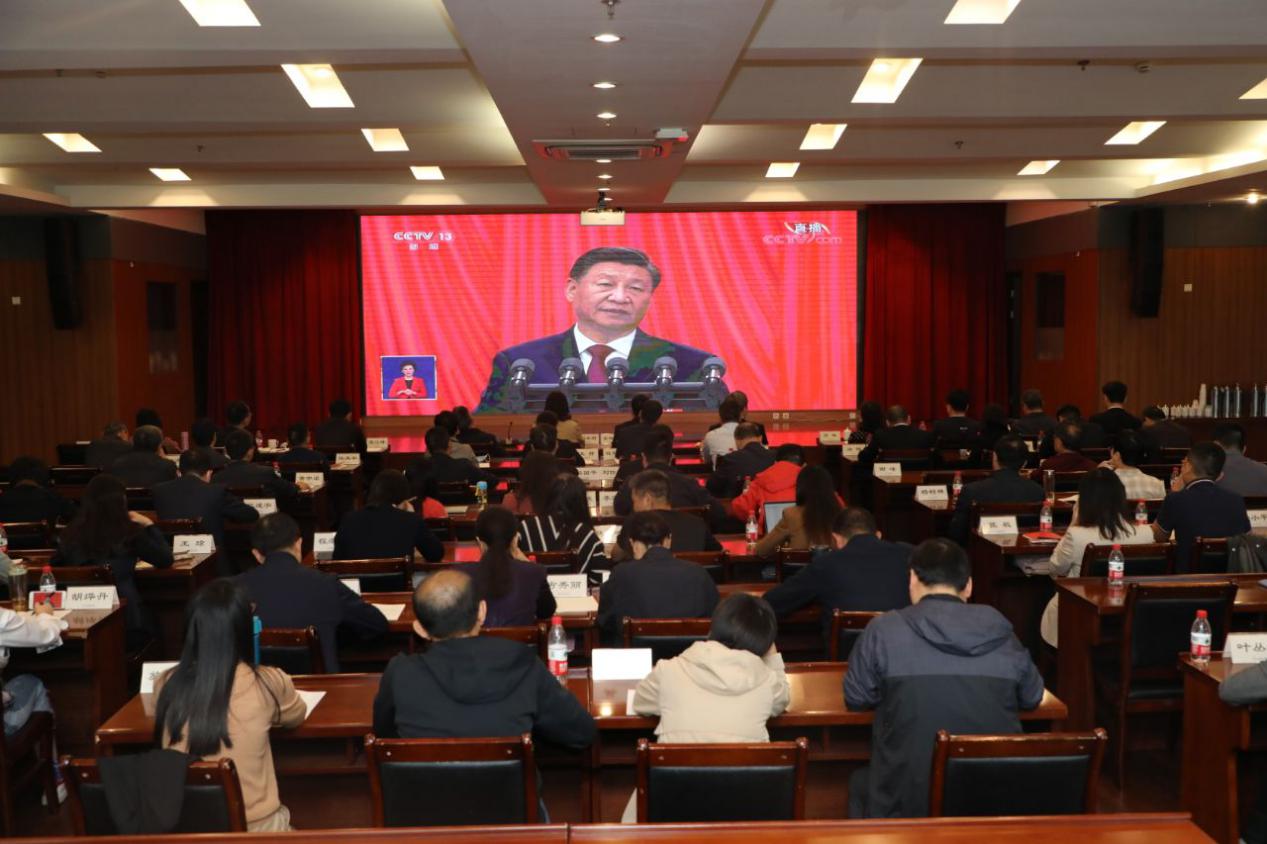 10月16日上午10时,中国共产党第二十次全国代表大会隆重开幕。学校组织安排了主会场和分会场对开幕会现场直播进行集体收看。校党委书记金杨华、校长郑亚莉等学校全体党政领导班子成员、学校发展咨询委员会主任周建松出席汇丰大厦汇通厅的主会场,校党委副书记王琦主持主会场收看学习活动。