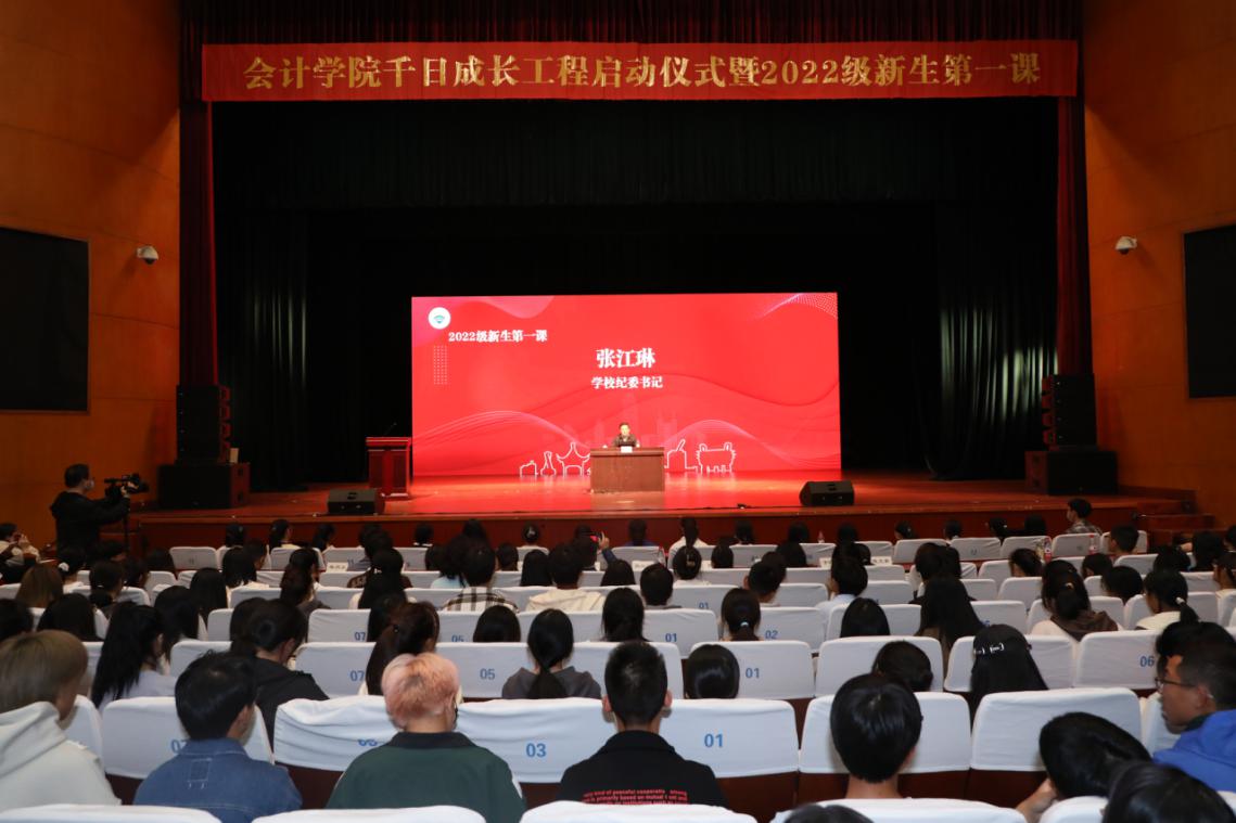 2022年10月17日,会计学院千日成长工程启动仪式暨2022级新生第一课在金葵花艺术中心举行。学校纪委书记张江琳出席仪式。