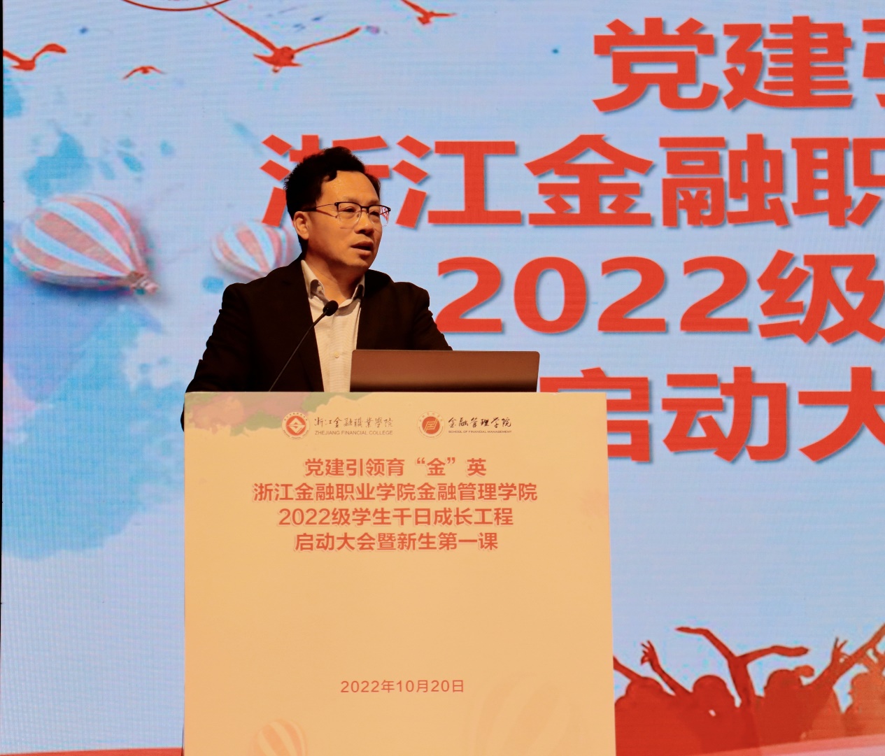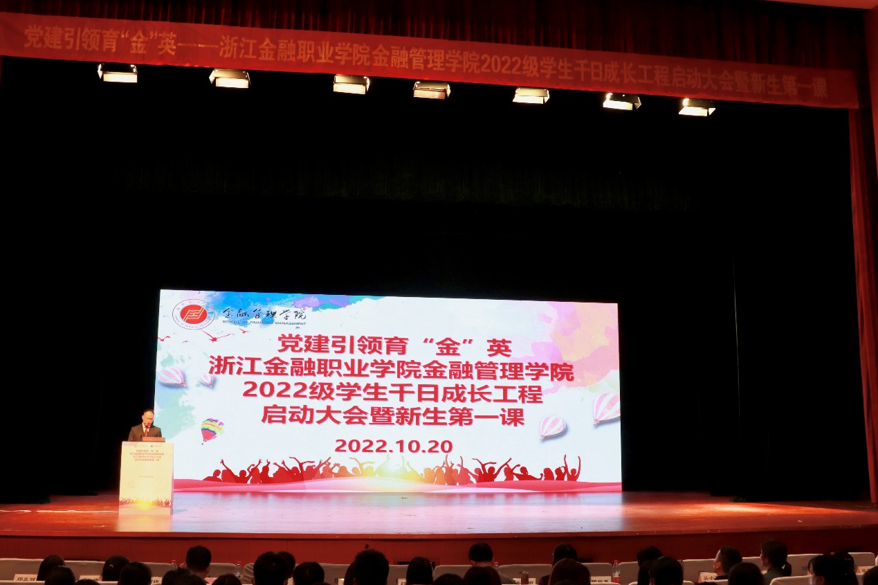 2022年10月20日,学校金融管理学院“党建引领育‘金’英”2022级学生千日成长工程启动大会暨新生第一课在金葵花艺术中心举行。学校党委委员、副校长郭福春出席大会。