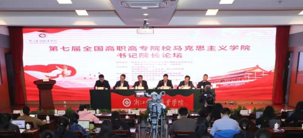 为深入学习党的二十大精神,贯彻中共中央《关于深化新时代学校思想政治理论课改革创新的若干意见》,落实教育部等十部门关于印发《全面推进“大思政课”建设的工作方案》的通知,统筹大中小学思政课一体化建设,推动各类课程与思政课程建设形成协同效应,由浙江金融职业学院、全国职业院校“大思政课”建设创新联盟、浙江省高职院校党建研究会共同主办,全国高职高专和长三角思想政治理论课建设联盟协办,教育部高校思政课“高职高专思政课”分教指委指导的第七届全国高职高专院校马克思主义学院书记院长论坛于11月27日在浙江金融职业学院汇丰大厦汇通厅成功举行。本次论坛的主题是学习贯彻党的二十大精神,推进高职院校“大思政课”建设,会议采用线上+线下相结合的形式开展,人民网数字思政研究院进行全程直播。学校党委书记金杨华,学校校长郑亚莉,浙江省高职院校党建研究会会长、学校发展咨询委员会主任周建松出席会议。会议由学校党委副书记王琦、副校长陈云涛主持。学校纪委书记张江琳,学校党委委员、党委宣传部部长张鹏超出席会议。