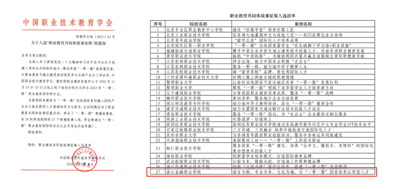 近日,中国职业技术教育学会公布“职业教育共同体故事征集”案例名单,我校《语言为根、专业为本、文化为魂,为“一带一路”国家培养应用型人才》案例成功入选。