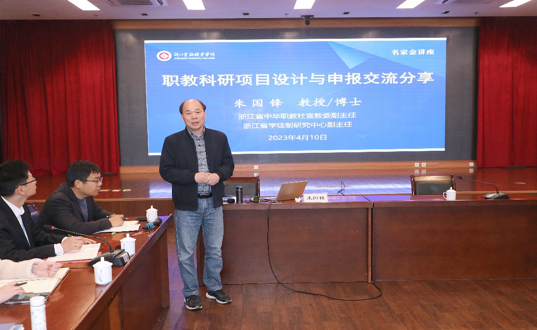 4月10日上午,浙江省中华职教社宣教委副主任、浙江省学徒制研究中心副主任朱国锋教授应邀为我校教师做《职教科研项目设计与申报交流分享》专题报告。学校校长郑亚莉主持报告会。